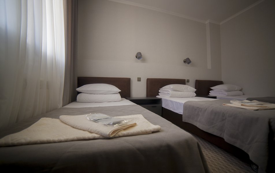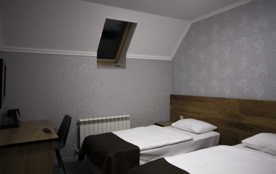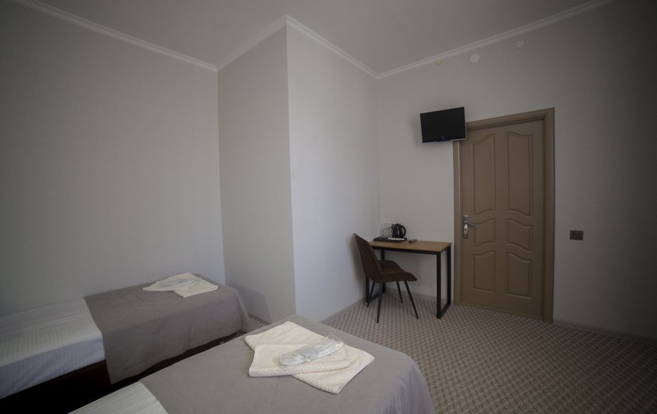 В номере: кровати односпальные, прикроватная тумбочка, стул