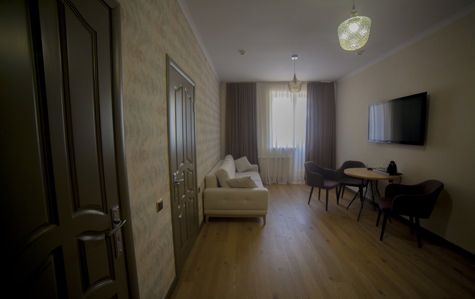 В номере: диван раскладной, комод, кресла, кровать двуспальная, прикроватные тумбочки, столик журнальный, шкаф, телевизор: (спутниковое ТВ)