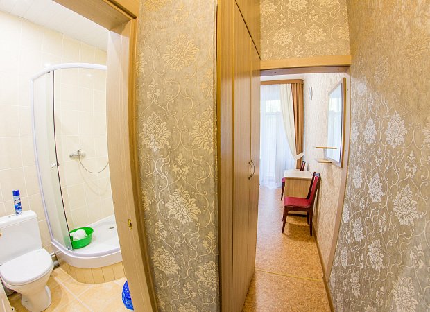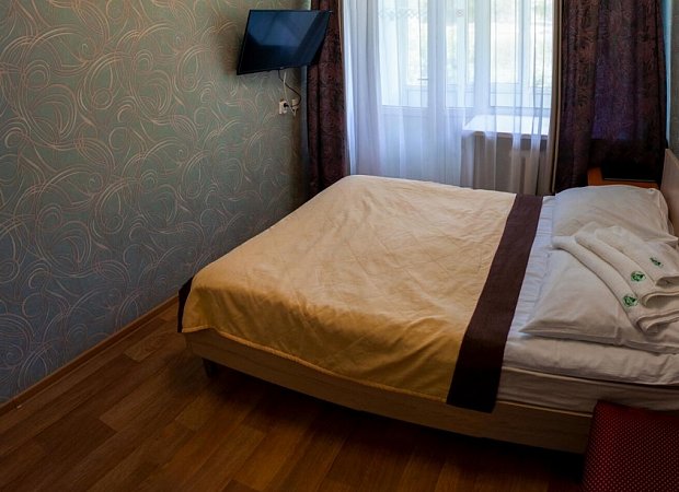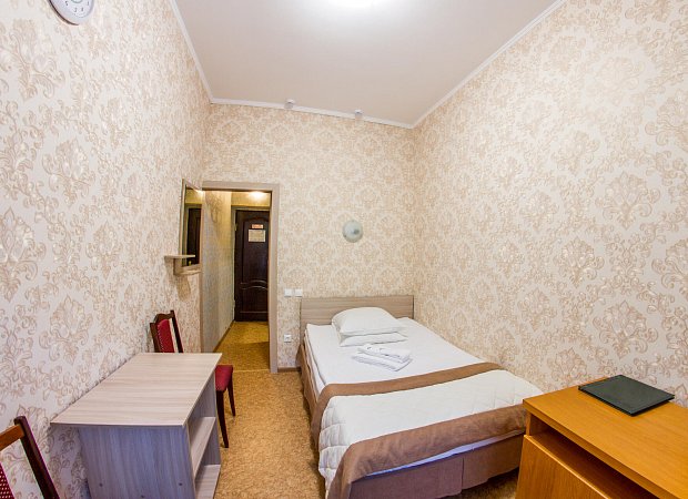 В номере: односпальная или полутораспальная кровать, тумба, шкаф, стол, стул, комод, телевизор, холодильник, wi-fi