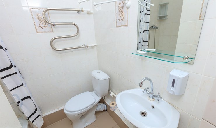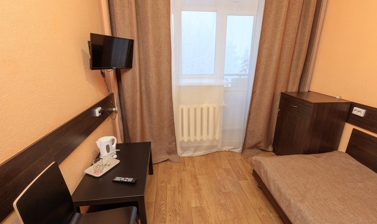 Оснащение номера: Мебель, вешалка, зеркало, кровать полутороспальная, стол, стулья, шкаф