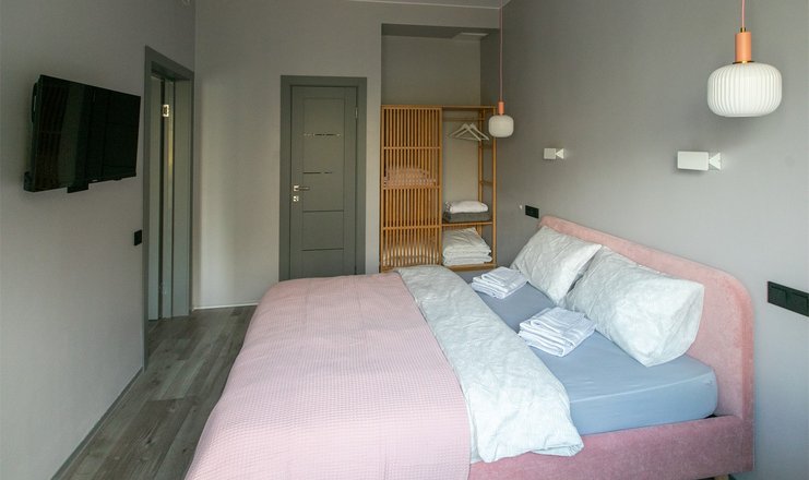 Оснащение номера: Две односпальные или большая двухспальная кровать, зеркало, журнальный столик, шкаф,