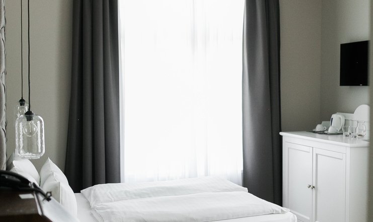 В номере: кровать односпальная, прикроватная тумбочка, шкаф, кондиционер, кофемашина, сейф, телевизор ЖК: спутниковое ТВ, телефон