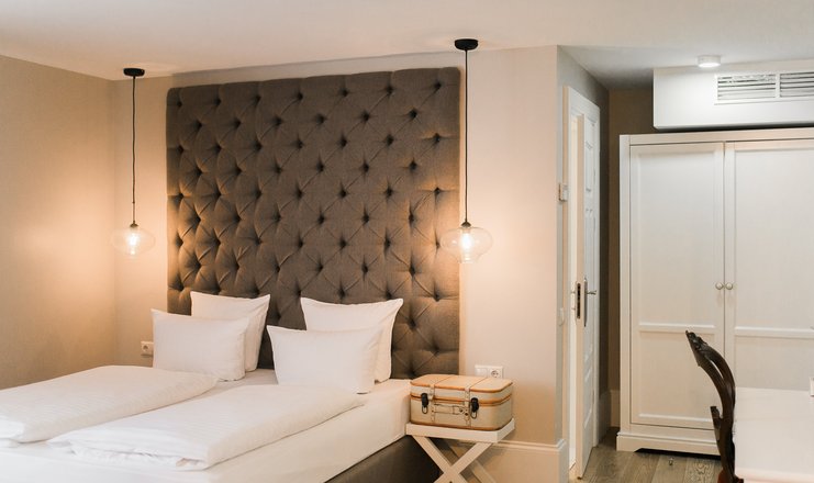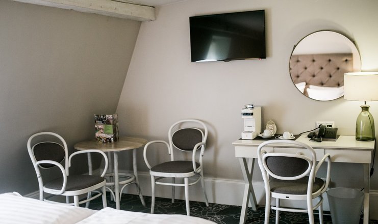 В номере: кровать двуспальная, прикроватные тумбочки, стол, стулья, шкаф, кондиционер, кофемашина, сейф, телевизор ЖК: спутниковое ТВ, телефон