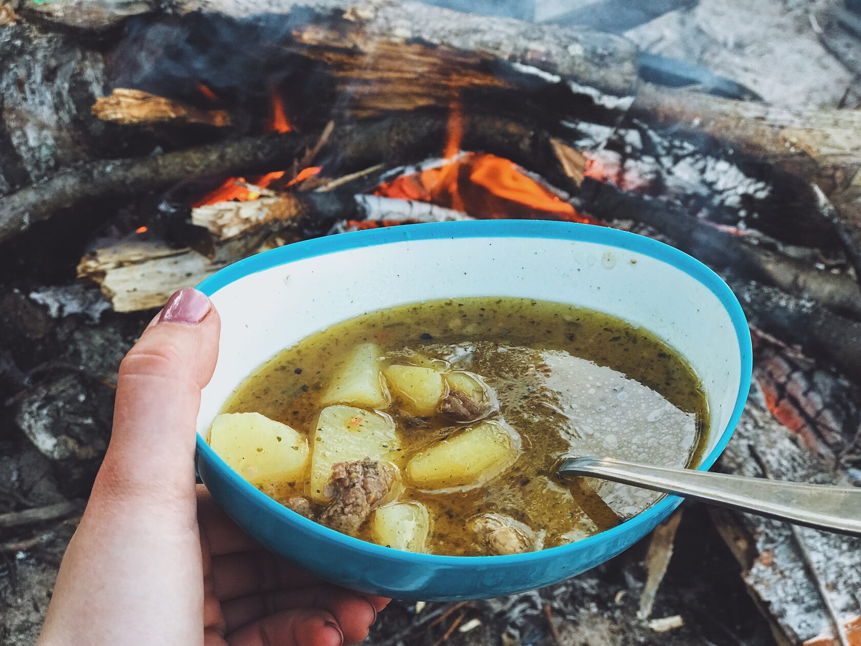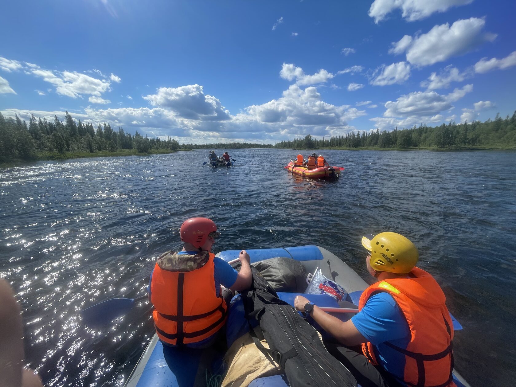 В середине маршрута запланирован пикник на берегу реки. Горячий обед готовим на костре. Во время стоянки можно порыбачить и собирать ягоды / грибы.
