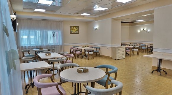 Современный светлый зал, выполненный в западноевропейским стиле. Прекрасное предложение для проведения небольших обедов и ужинов.