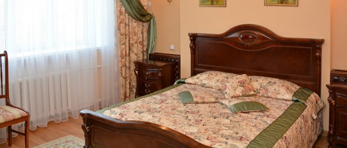 На территории санатория, занимающей чуть меньше 9 гектаров, расположены три жилых корпуса высотой от 3 до 4 этажей, соединенных между собой теплыми переходами, столовая и водолечебница. Санаторий рассчитан на единовременное проживание 220 человек и предлагает гостям номера различного уровня комфорта. Во всех номерах есть необходимая мебель, техника, санузел с душем или ванной, а в некоторых номерах есть балконы. Для семейных туристов есть двухкомнатные номера категории Люкс, а для экономных - номера второго, третьего класса и Стандарт. Кроме того, санаторий предлагает для заселения трехкомнатный коттедж с оборудованной кухней.