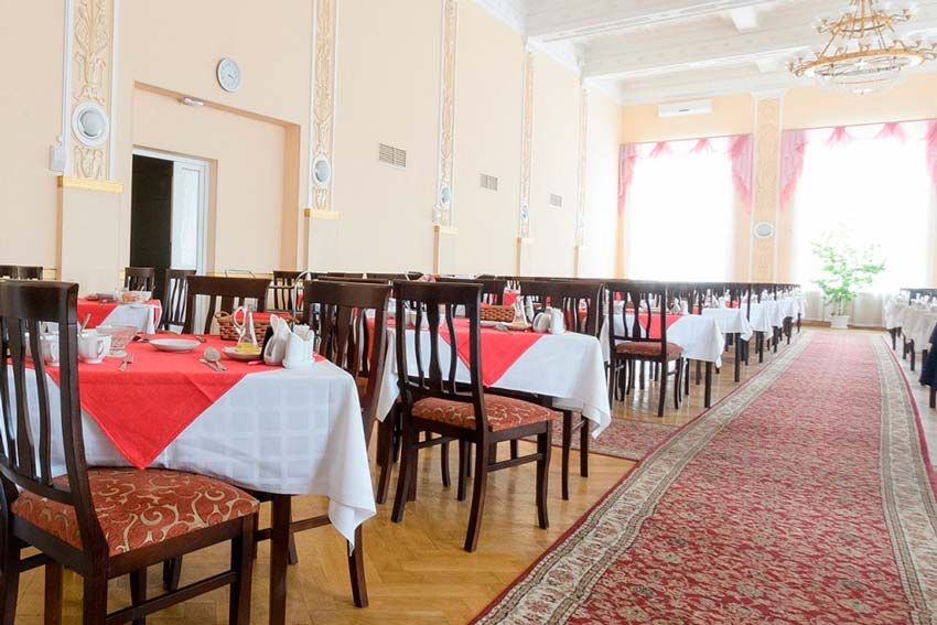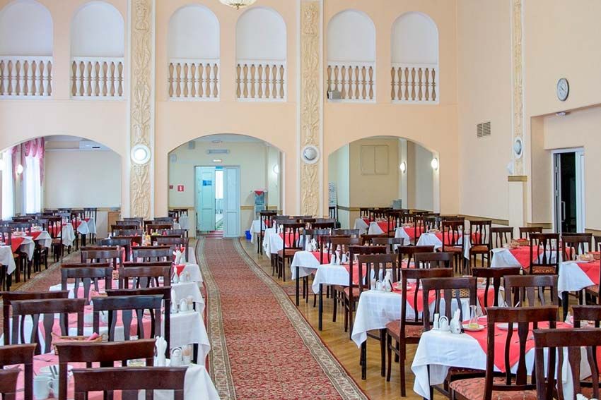 В просторной столовой санатория «Москва» организовано разнообразное и полноценное 3-х разовое питание по системе «меню-заказ». Опытные повара столовой с любовью готовят аппетитные блюда из экологически чистых продуктов с использованием технологичного оснащения. Особое внимание при приготовлении пищи уделяется сохранению витаминов и полезных свойств пищи.