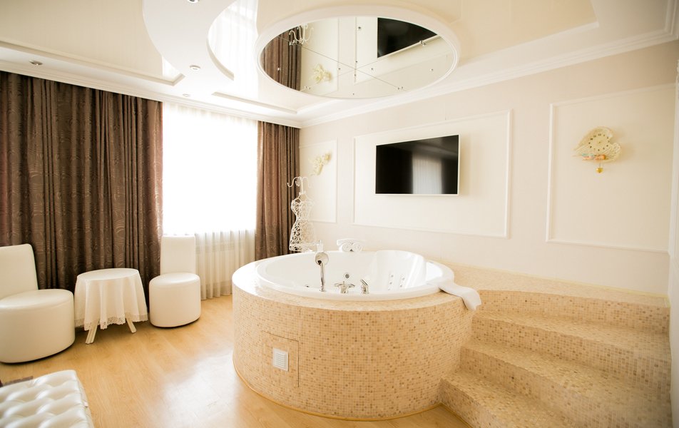 Санузел: с джакузи, с душевой кабиной, тапочки, туалетные принадлежности, фен, халат