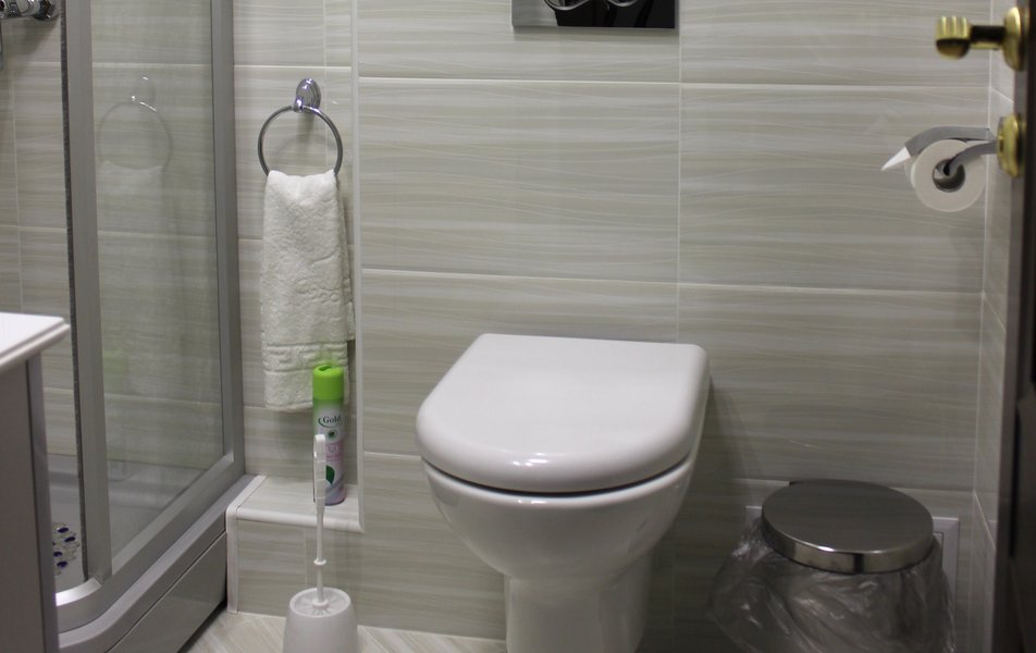 Санузел: биде, с ванной или душевой кабиной, тапочки, туалетные принадлежности, фен, халат