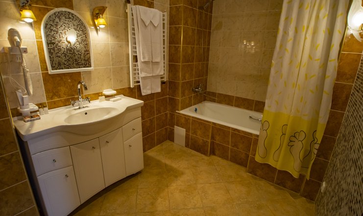Сан/узел: ванна, раковина, унитаз, биде, фен, тапочки, халаты, гигиенические принадлежности