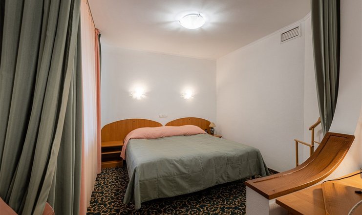 Мебель: Кровать двуспальная или кровати односпальные, тумба, стол, стул, шкаф