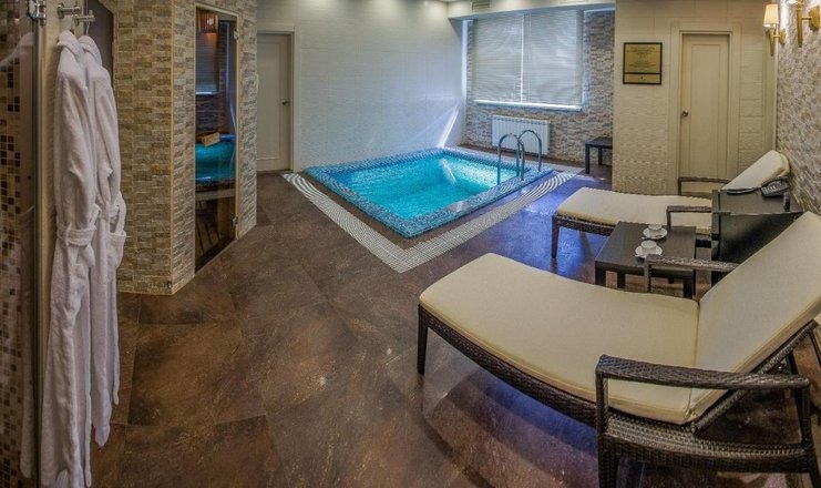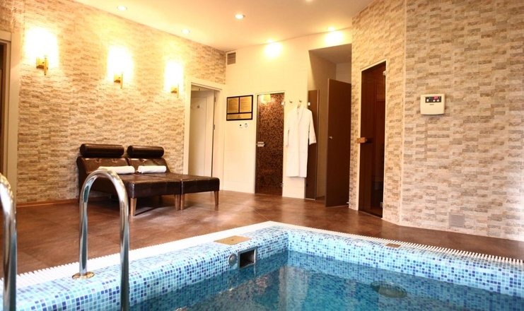 • Сауна с бассейном (Режим работы: пн-вс с 7:00 до 22:00. Стоимость 1 часа: 1500 рублей. Вместимость: 4 человека.)