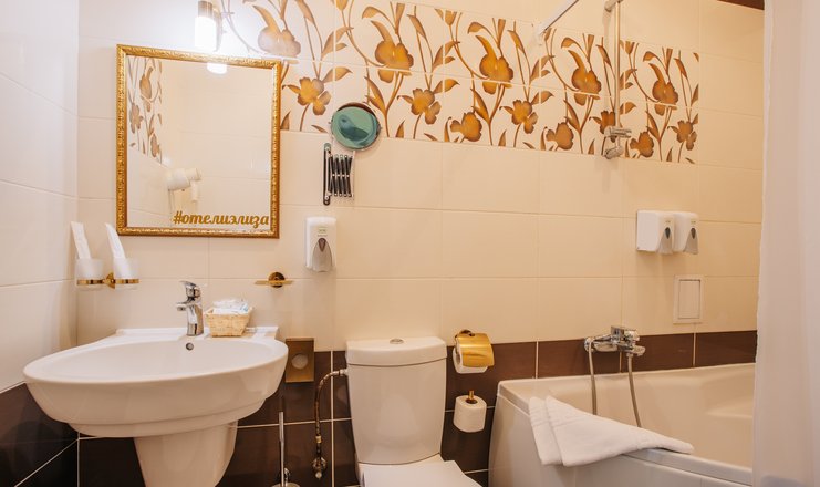 Санузел: биде, с ванной, тапочки, туалетные принадлежности, фен, халат
