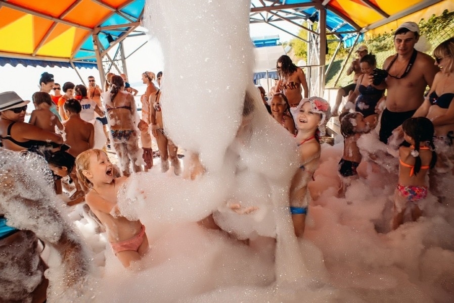 Санаторий имеет собственный пологий галечный пляж, который находится в 250-ти метрах от спальных корпусов. Для спуска на пляж оборудованы лифты. На пляже есть навесы от солнца, шезлонги. Есть площадка для пляжного волейбола, осуществляется прокат пляжного и спортивного инвентаря. Функционирует прокат катеров, скутеров, водных лыж, катамаранов, водных «бананов», «таблеток». Есть возможность для занятий виндсерфингом. Для детей оборудован бассейн с надувной горкой, надувной батут.