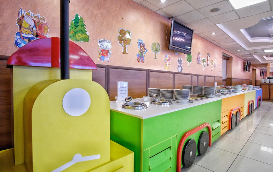 - «Малый зал» преимущественно для родителей с маленькими детьми. В меню «Малого зала» предлагаются диетические и детские блюда. Для удобства маленьких гостей имеются детские стульчики для кормления.