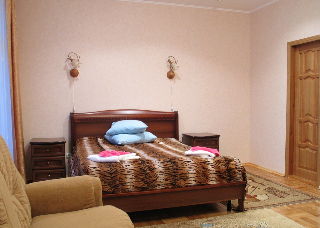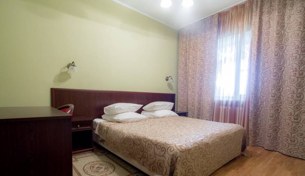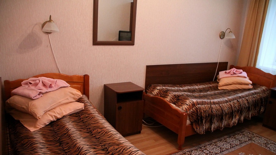 В номере: телевизор, холодильник, чайник, фен, кондиционер, двуспальная кровать, душевая кабина, микроволновая печь, утюг