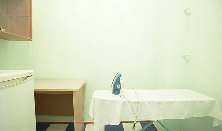 Оснащение номера: спальня и гостиная, две односпальные кровати, прикроватные тумбочки, стулья, стол, шкаф для одежды, набор мягкой мебели, телевизор, телефон, холодильник, электрический чайник, утюг, гладильная доска