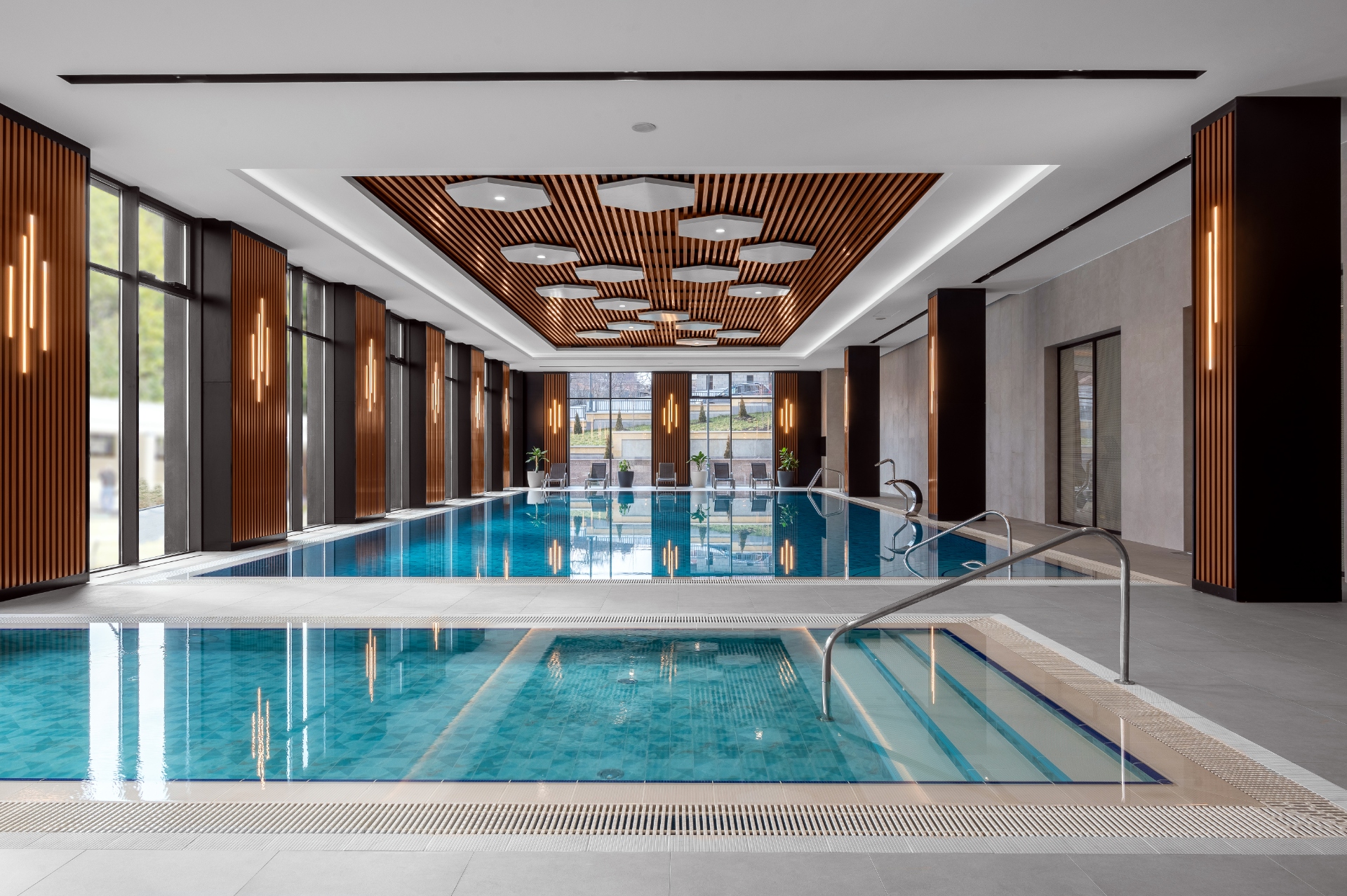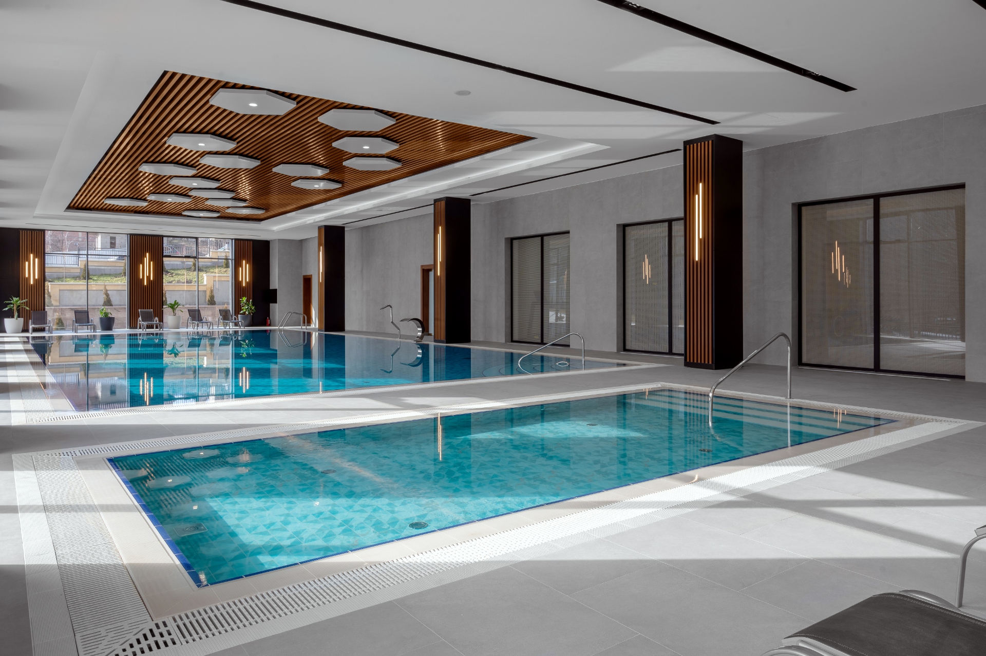Оба бассейна поддерживают комфортную температуру воды в 28°С. Вода в бассейне всегда сверкающая и кристально чистая благодаря использованию высокотехнологичной системы трехуровневой очистки: хлорирования, ионизации и УФ-облучения. Мы также постоянно контролируем уровень PH и хлора, чтобы обеспечить безопасность и комфортность для посетителей.