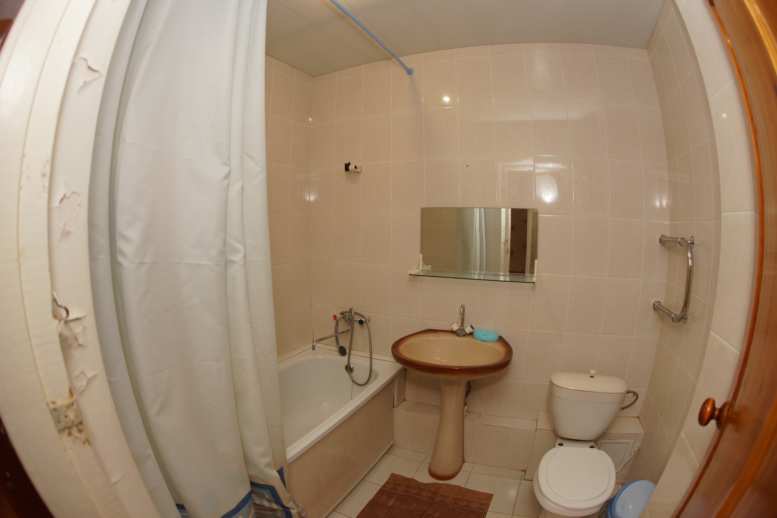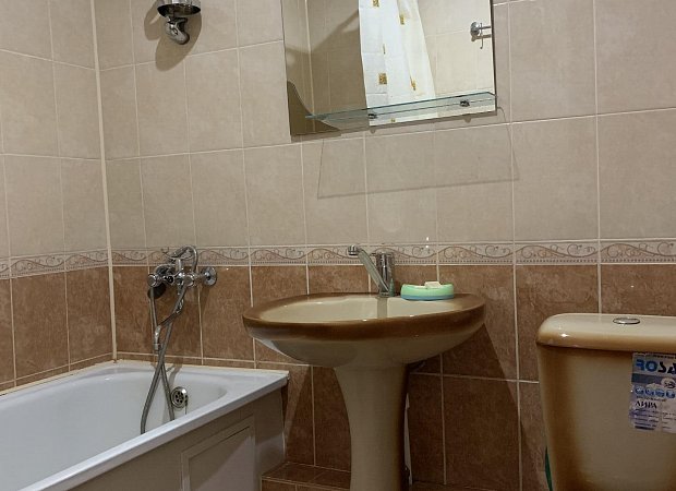Санузел: ванна, раковина, унитаз, банные полотенца