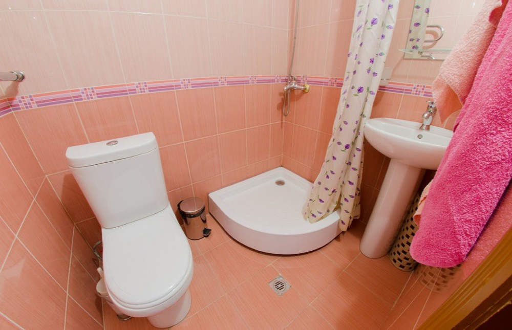 В номере: две полутораспальные кровати, прикроватные тумбы, стол, стулья шкаф, мини-холодильник, телевизор