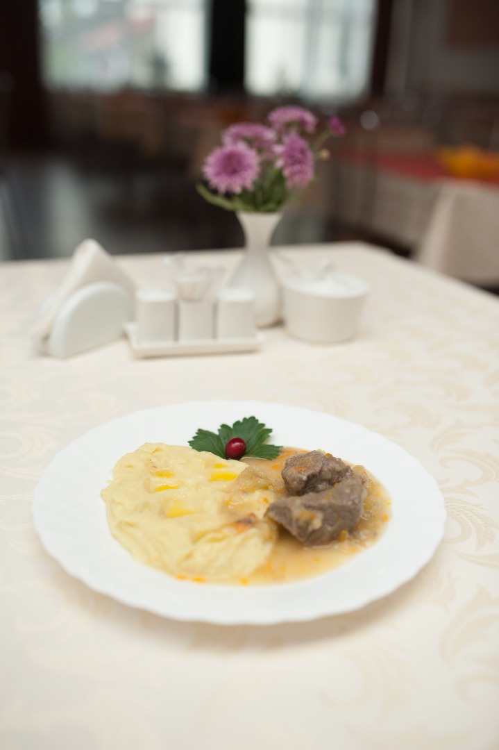 Вкусное, разнообразное, качественное питание – одна из самых важных составляющих услуг нашего санатория «Ясельда». Доставить качественную продукцию, вкусно приготовить, сохранить максимум питательных веществ и витаминов, красиво сервировать и вовремя подать приготовленную пищу гостям - со всеми этими задачами прекрасно справляется коллектив санатория «Ясельда».Интерьер обеденного зала в теплой цветовой гамме располагает к приему пищи, особенного когда в нем присутствует музыкальное сопровождение. Осуществляется контроль качества питания на всех этапах приготовления пищи, от получения сырья до готовой продукции.
