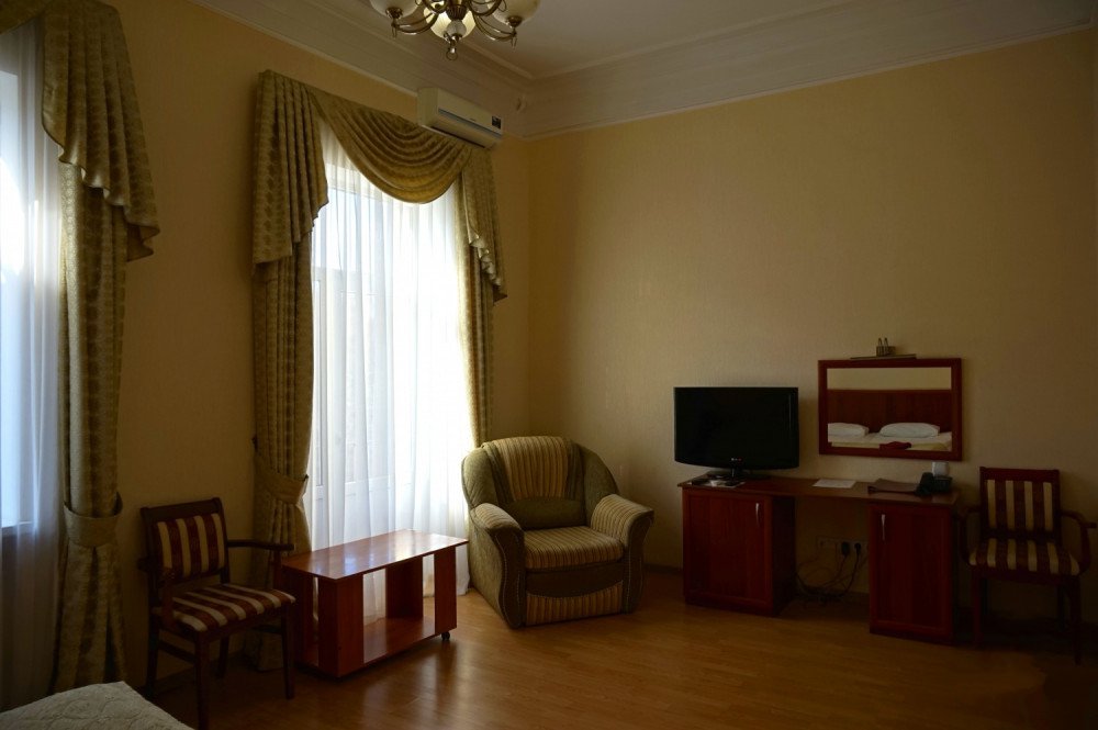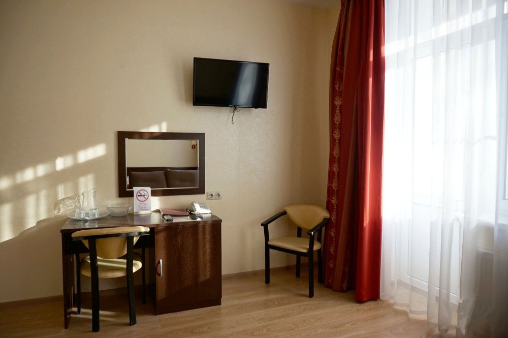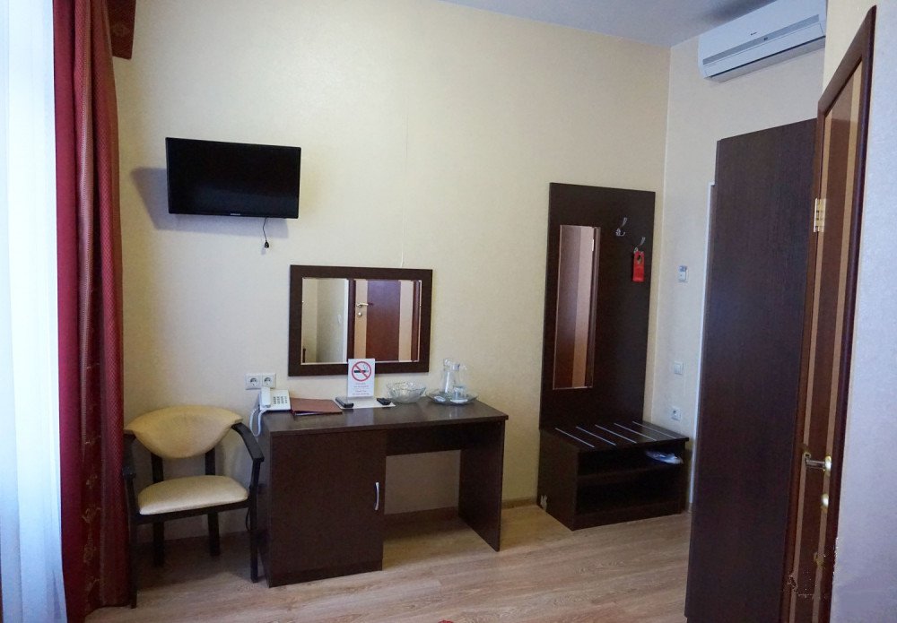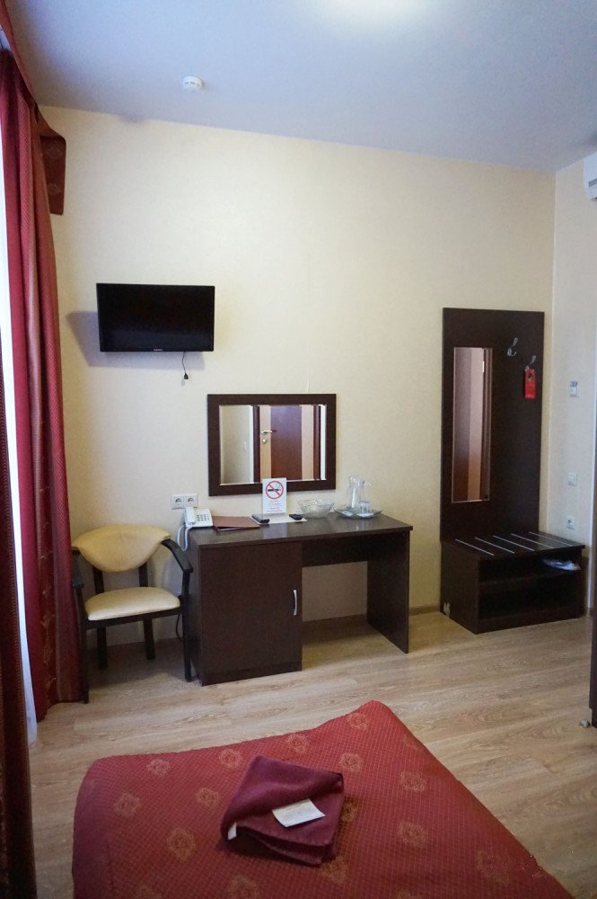 В номере: 1-а односпальная кровать, холодильник, мини-бар, плоскоэкранный телевизор, мини-сейф, телефон, кондиционер.