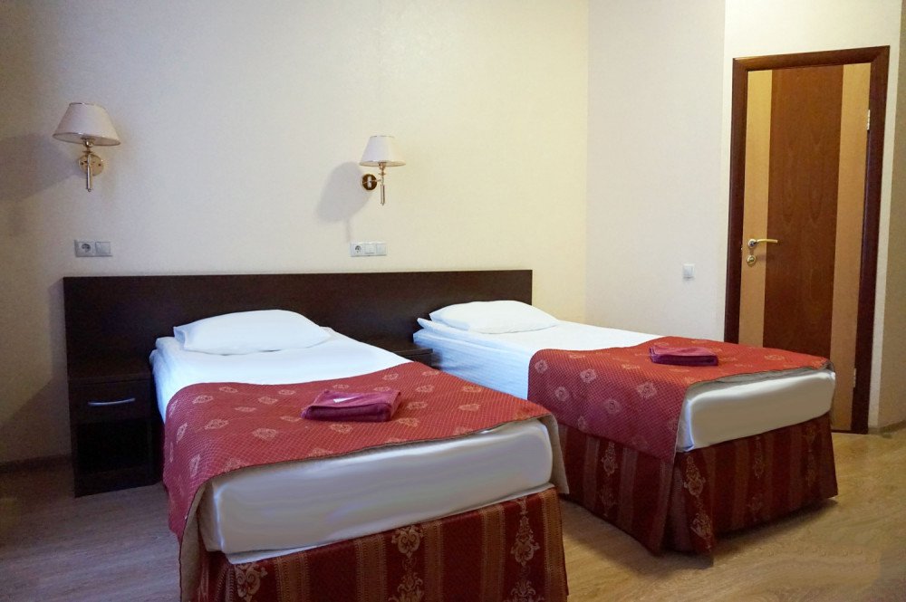 В номере: 2-е односпальные кровати или одна большая, холодильник, мини-бар, плоскоэкранный телевизор, мини-сейф, телефон, кондиционер.
