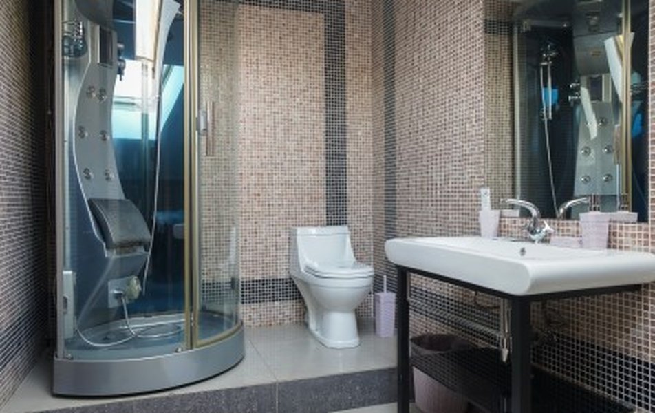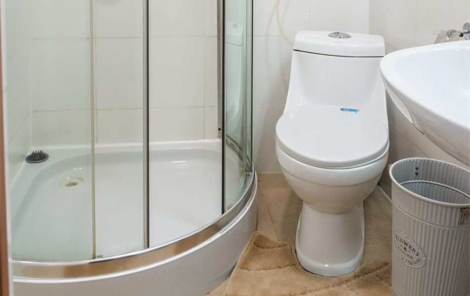 Санузел: с душем, тапочки, туалетные принадлежности, халат