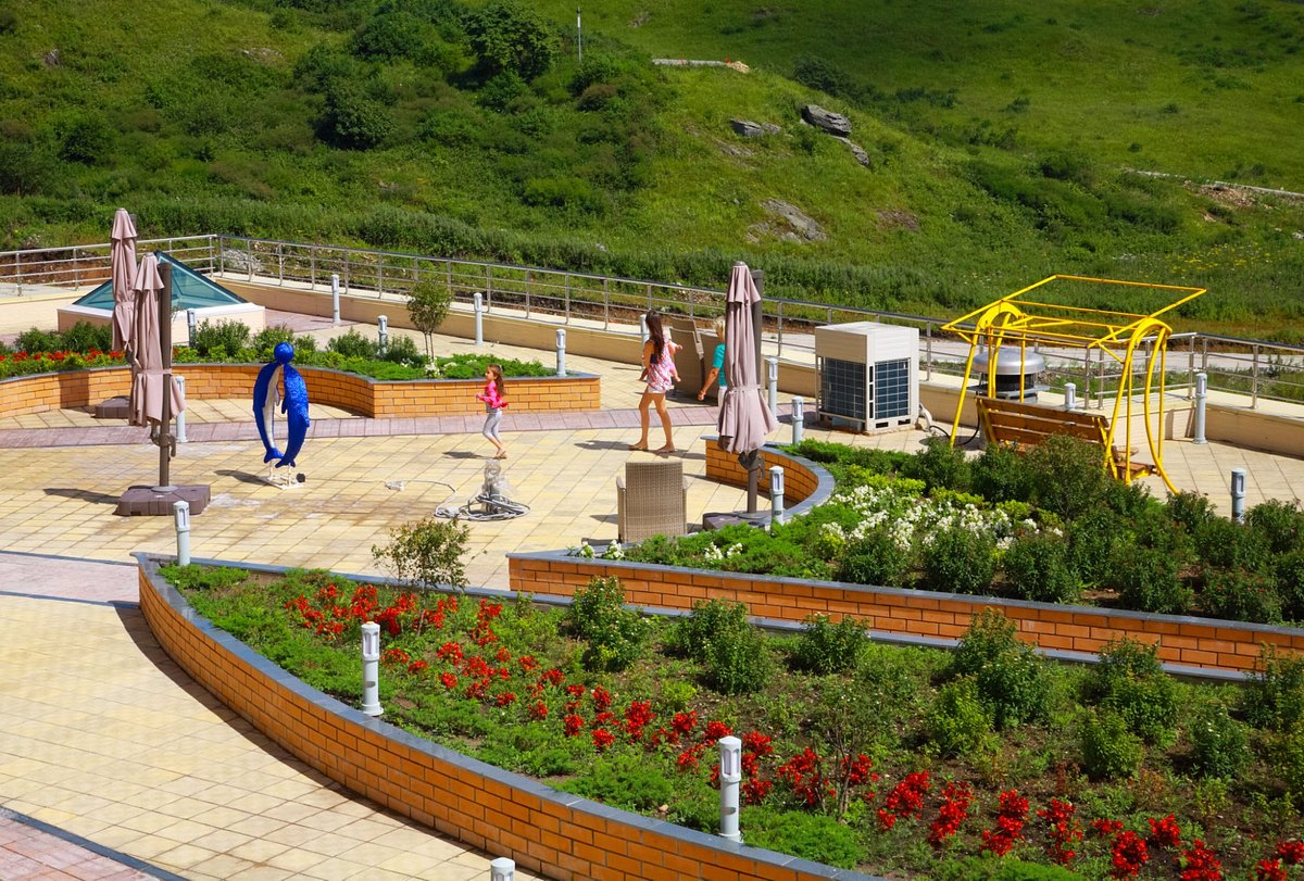 Детские площадки в отеле расположены возле корпусов, на территории комплекса расположены качели и лавочки для удобства гостей. Специальное резиновое покрытие на детских площадках убережет малышей от травм. Горки, карусели, турники и прочие конструкции надолго займут ваших детей. Юные рыбаки также могут попытать счастье на пруду «Золотая рыбка», покататься на роликах или велосипеде, а в зимнее время на коньках и ледяной горке. Весь необходимый инвентарь доступен к аренде на территории.