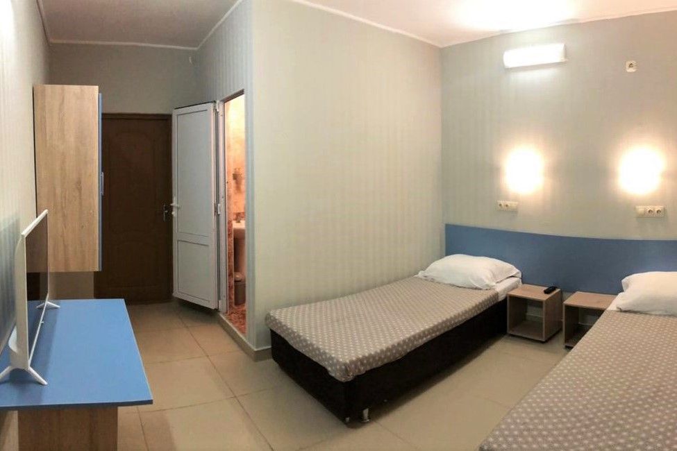 Оснащение номеров: односпальные или двуспальные кровати, прикроватные тумбочки, стол, стулья, шкаф для одежды, холодильник, кондиционер, телевизор