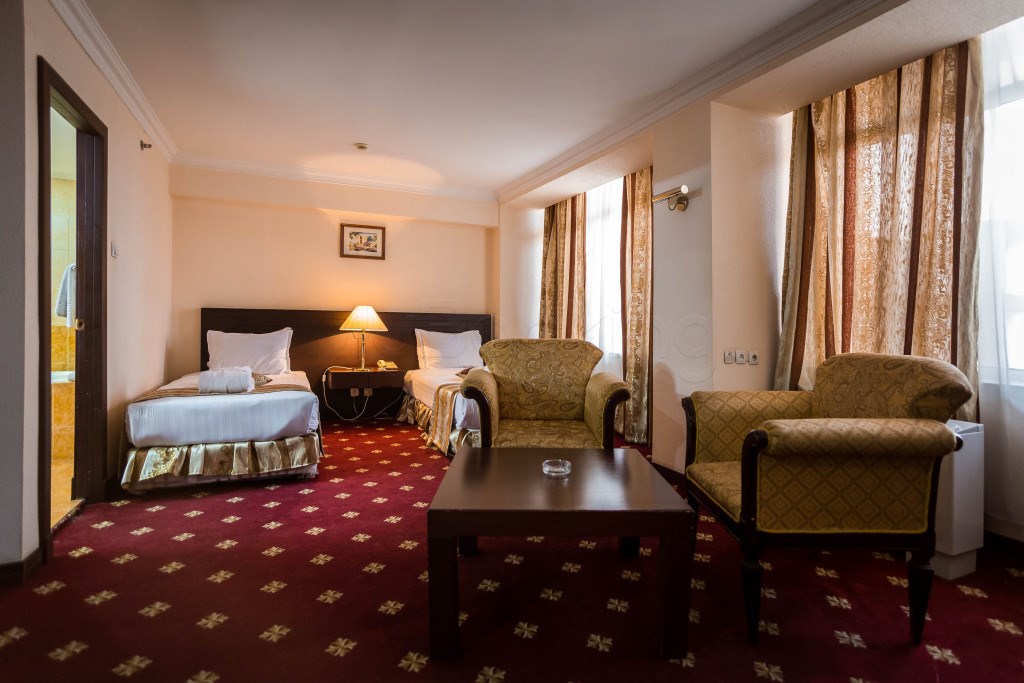 В номере: двуспальная кровать, односпальная кровать, гардеробная, зеркало, кресло, стул, шкаф-купе, диван, стол, стулья, кресла, шкаф для одежды, кондиционер, телевизор, телефон, сейф, мини-бар, мини-холодильник