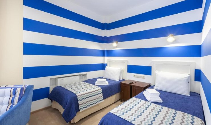 В номере: кровать полутораспальная, прикроватные тумбочки, стол, стулья, шкаф, кондиционер, мини-холодильник, сейф, телевизор ЖК, телефон, чайный набор посуды, электрочайник