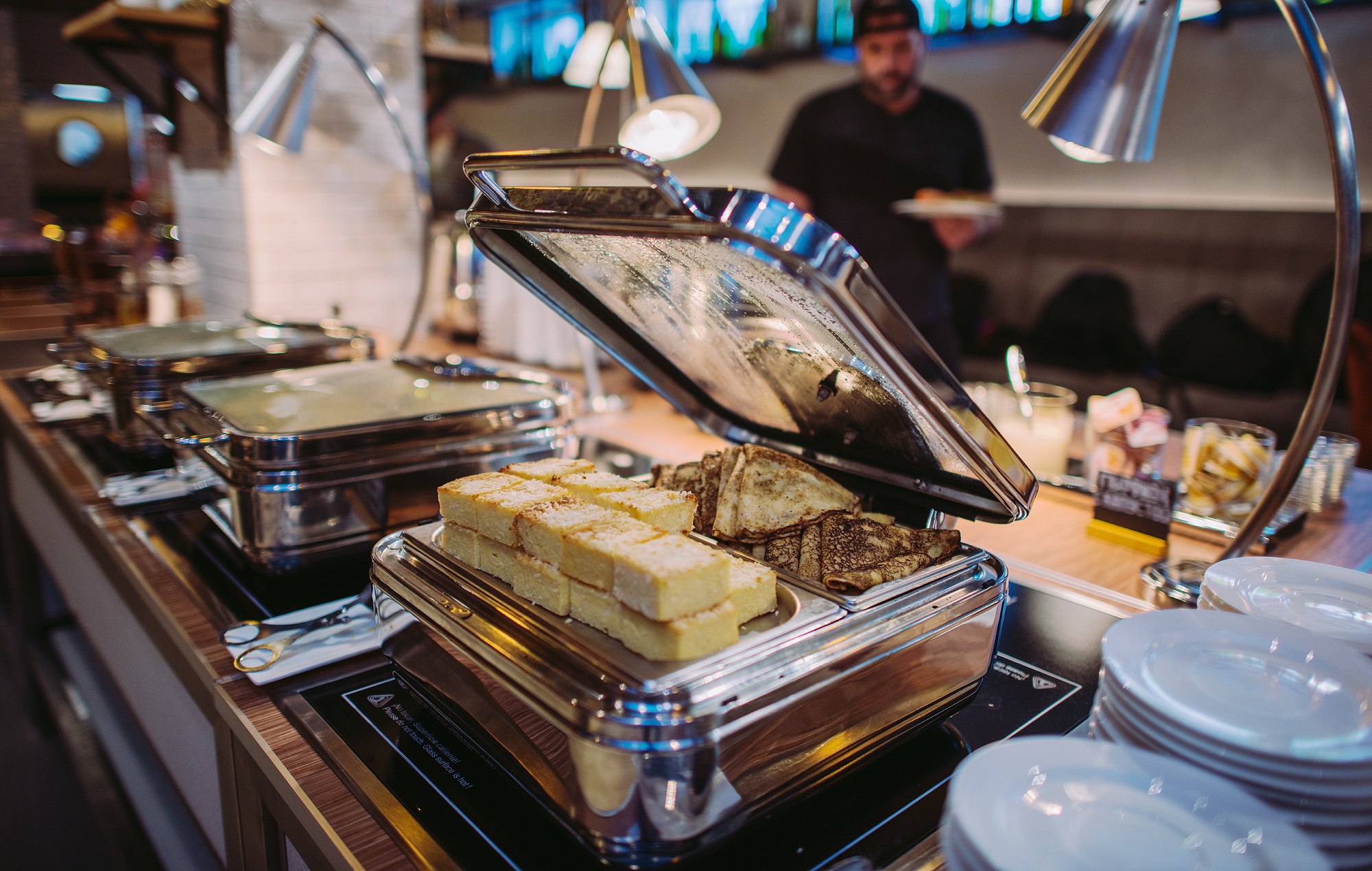 Ресторан «Южный» в модном стиле loft ждет постояльцев на завтраки в формате "шведского стола", входящиее в стоимость номера на втором этаже отеля. Это превосходноме место для проведения семейного праздника или корпоративного банкета до 80 персон.