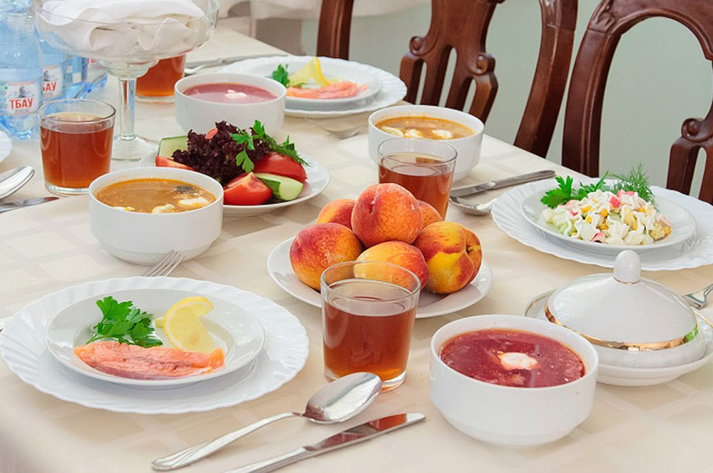 В гостинице "Чайка" особенно уделяется внимание вопросам питания отдыхающих, поскольку оно является одним из важных элементов лечебно-терапевтического процесса. Шеф-повара приготовят для гостей полезные и по-домашнему вкусные блюда, сбалансированные по калорийности и энергетической ценности. На столах постояльцев каши, супы, гарниры, мясо и рыба, закуски, салаты, выпечка, напитки, свежие овощи и фрукты. Все блюда приготовлены из натуральных и качественных продуктов, без применения усилителей вкуса, трансжиров и консервантов. В здравнице действует трехразовое питание по системе "заказное меню", это значит, что каждый отдыхающий самостоятельно формирует свое меню на следующий день, выбирая для себя подходящие и любимые блюда. В день заезда осуществляется комплексное питание. Кроме столовой на территории санатория работает уютное кафе, где Вы сможете провести романтическую или деловую встречу или просто перекусить и провести и приятно за любимыми напитками, десертами или закусками.