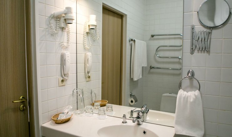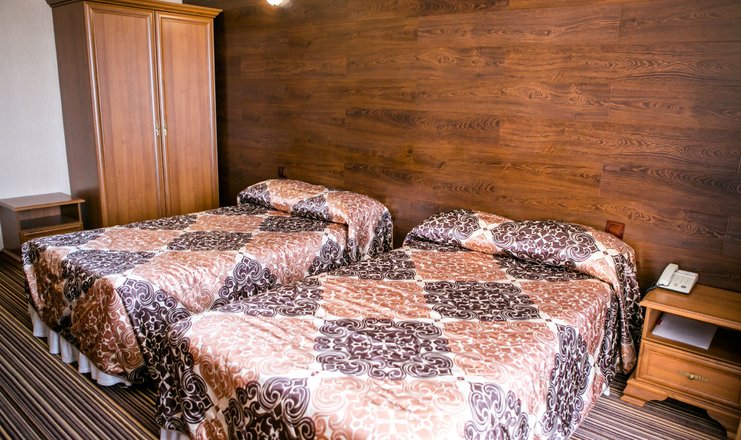 В номере: вешалка, зеркало, кровати односпальные, раскладушка  на доп. место, прикроватные тумбочки, стол, стулья, шкаф, мини-холодильник, сплит-система, телевизор, телефон, чайный набор посуды, электрочайник