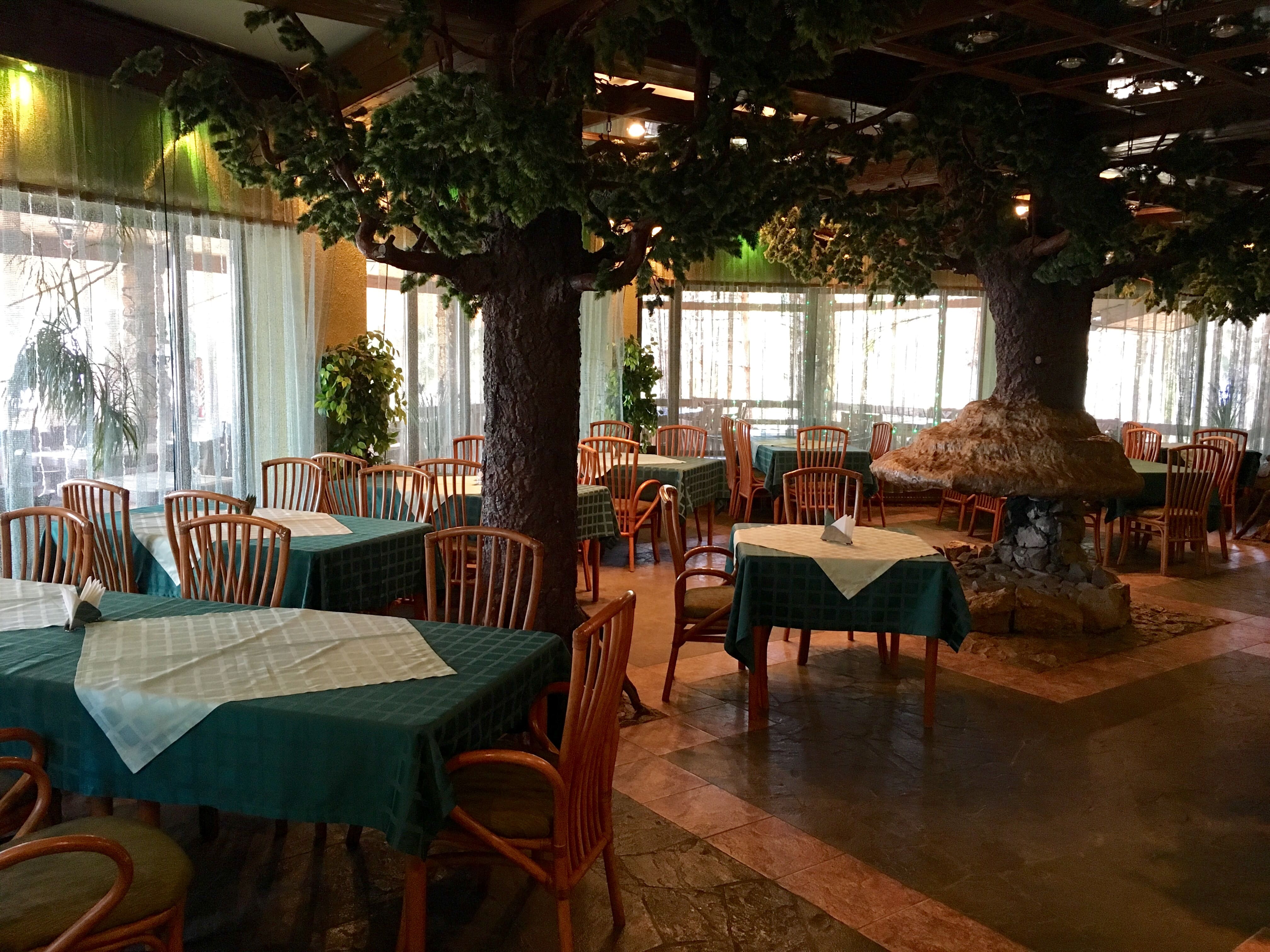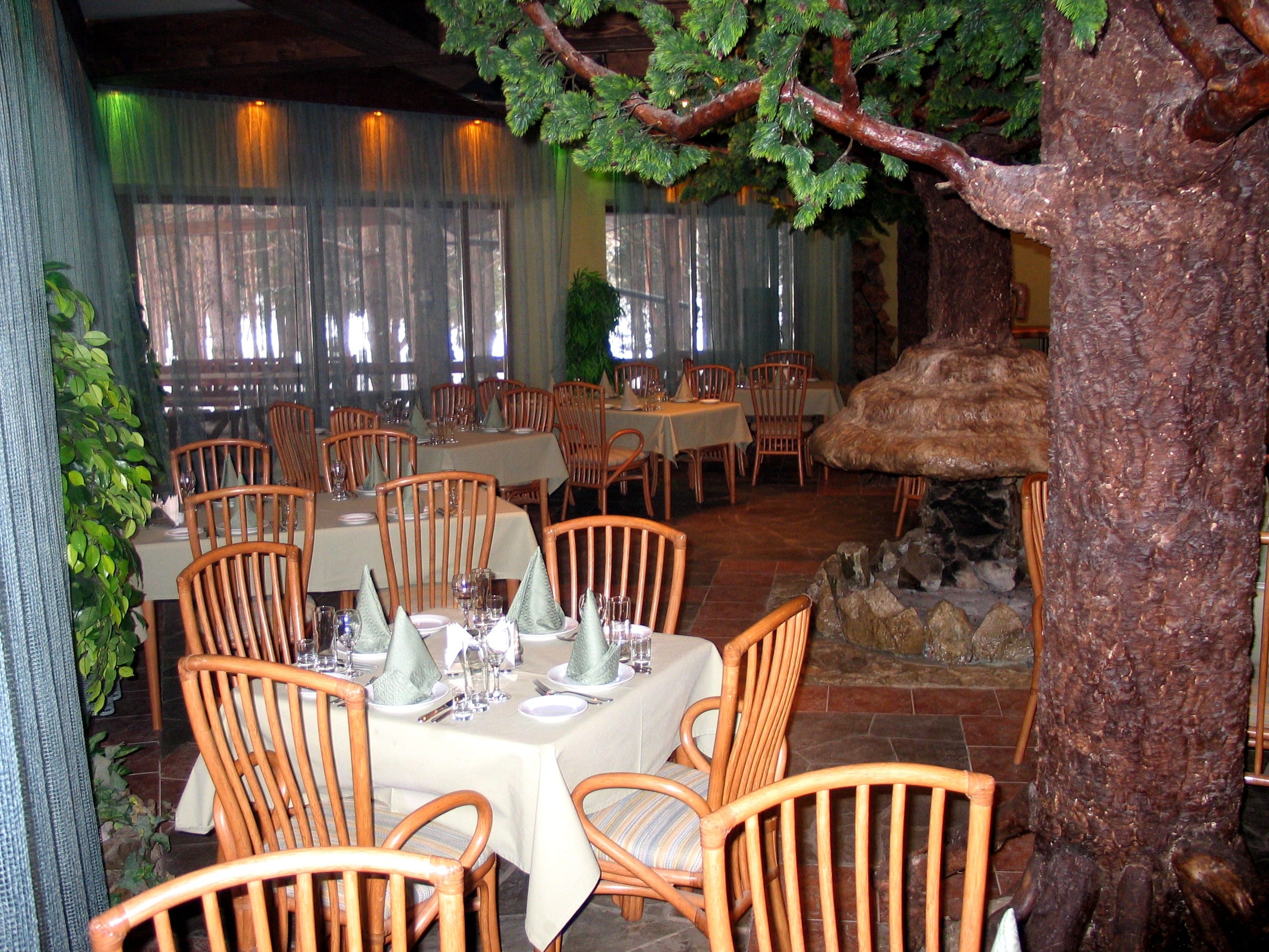 Ресторан в Подмосковье на территории отеля «Тирс» представляет собой уютное место для отдыха и проведения зажигательных мероприятий. В ресторане с комфортом разместятся шестьдесят человек, а расположен он на первом этаже отдельного корпуса. Его можно заказать на мероприятие или же посетить во время отдыха в нашем отеле. Для того, чтобы заказать ресторан для свадьбы в Подмосковье требует позвонить нам по телефону или написать на электронную почту. Помимо этого, вы можете заказать у нас организацию любого праздника, и мы сделаем его незабываемым. Интерьер ресторана заслуживает особого внимания. Выполнен он в рустикальном стиле, который отличается обилием природных элементов: натурального дерева и камня. Особую атмосферу интерьеру придают оригинальные светильники. Выполнены они на заказ умелыми руками мастеров и соответствуют оригинальному дизайну помещения. Изюминкой интерьера является большой камин посредине зала ресторана. Он выполнен в виде могучего корня дуба и придаёт интерьеру особого шарма. Интерьер ресторана поможет вам сделать красивую кино-фотосъёмку и получить эстетическое наслаждение.