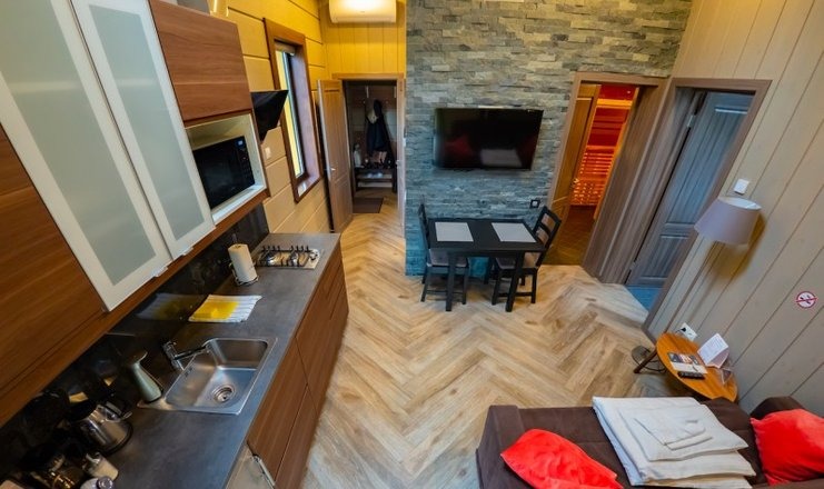 Оборудование: Телевизор, холодильник, электрочайник, варочная панель, микроволновая печь
