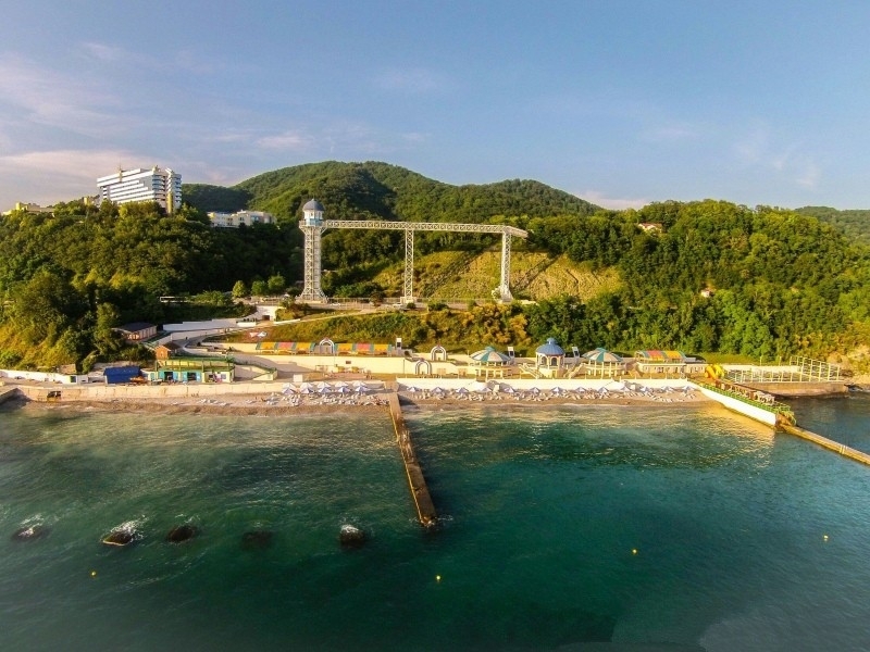 Санаторий имеет собственный пологий галечный пляж, который находится в 250-ти метрах от спальных корпусов. Для спуска на пляж оборудованы лифты. На пляже есть навесы от солнца, шезлонги. Есть площадка для пляжного волейбола, осуществляется прокат пляжного и спортивного инвентаря. Функционирует прокат катеров, скутеров, водных лыж, катамаранов, водных «бананов», «таблеток». Есть возможность для занятий виндсерфингом. Для детей оборудован бассейн с надувной горкой, надувной батут.