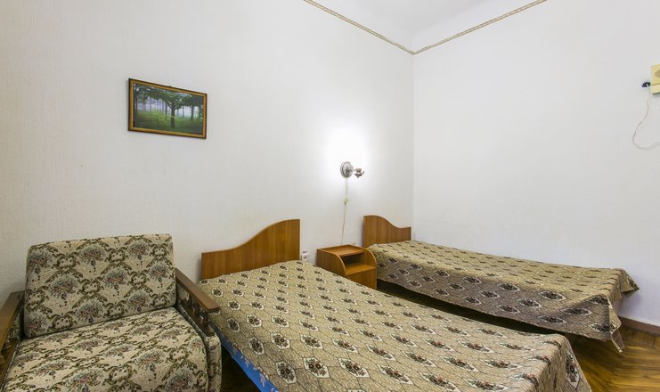 В номере: кровати, шкаф, тумбочка, холодильник, телевизор, вентилятор по требованию