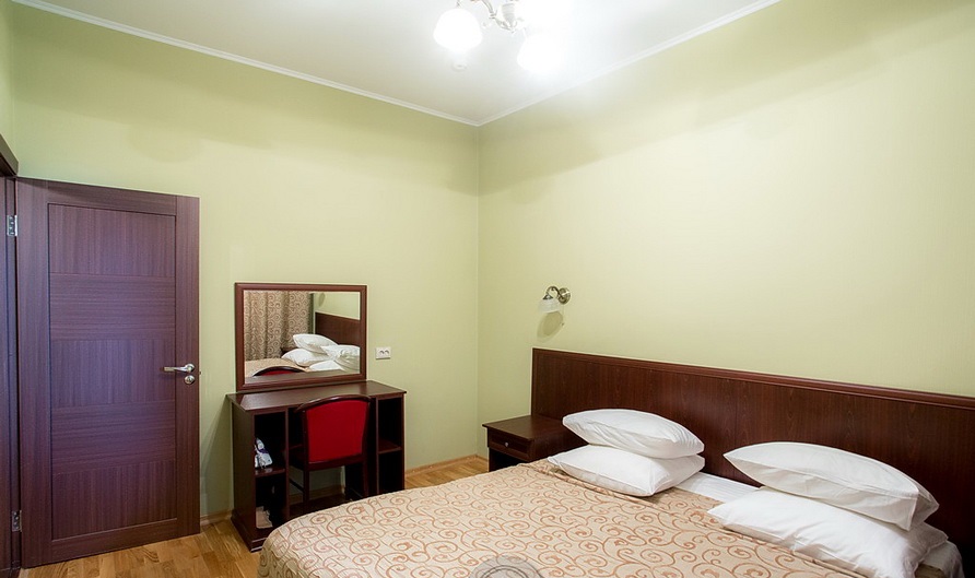В номере: телевизор, холодильник, чайник, фен, кондиционер, двуспальная кровать, душевая кабина, микроволновая печь, утюг