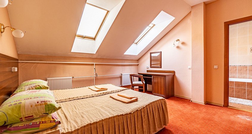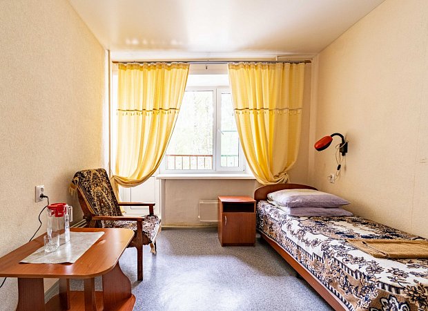 В номере: телевизор, холодильник, обогреватель, вентилятор, интернет, Wi-Fi, две полутороспальные кровати, шкаф для одежды, тумбы, стулья, диван