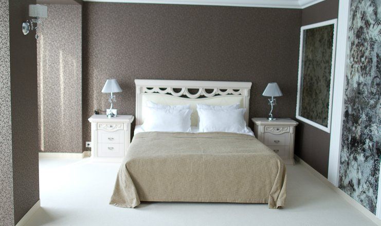 Оснащение номера: двуспальная кровать, прикроватные тумбочки, стол, стулья, кресла, журнальный столик, шкаф для одежды, кондиционер, телевизор, телефон, холодильник