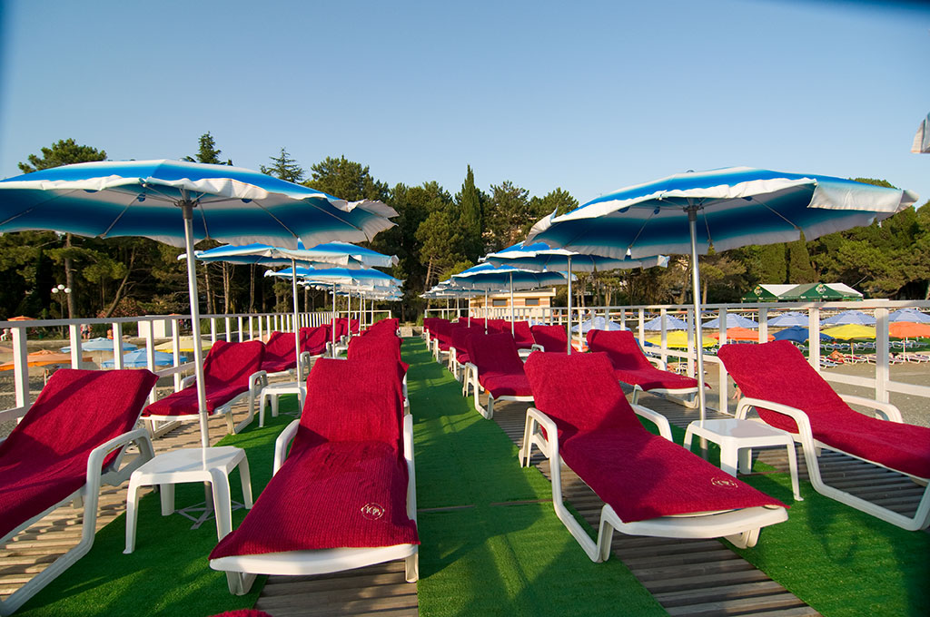 28) пляж: собственный галечный оборудованный пляж шириной 375 м. На пляже есть кабинки для переодевания, летние душевые кабинки, мужской и женский аэрарии, пляжные зонты и шезлонги. Около пляжа — лодочная станция, где напрокат можно взять катамаран.